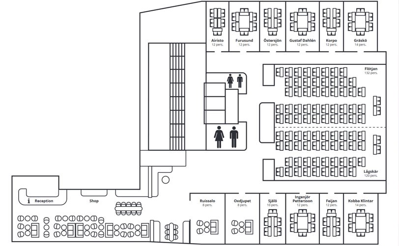 - Utrymmen för stora och små, avslappnade och traditionella möten